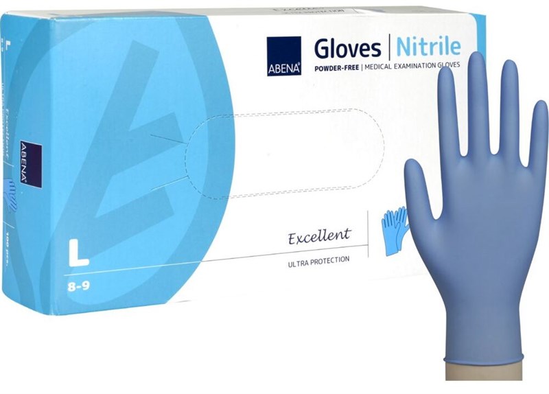 Abena Nitril Handske Pudderfri - Large (str. 8-9)
