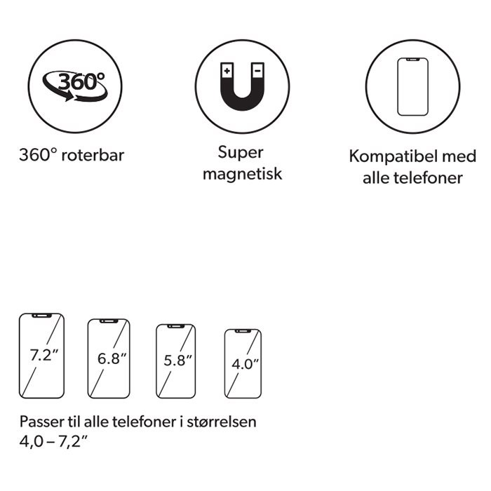 • Kraftfulde magneter holder din smartphone på plads, mens du er på farten.