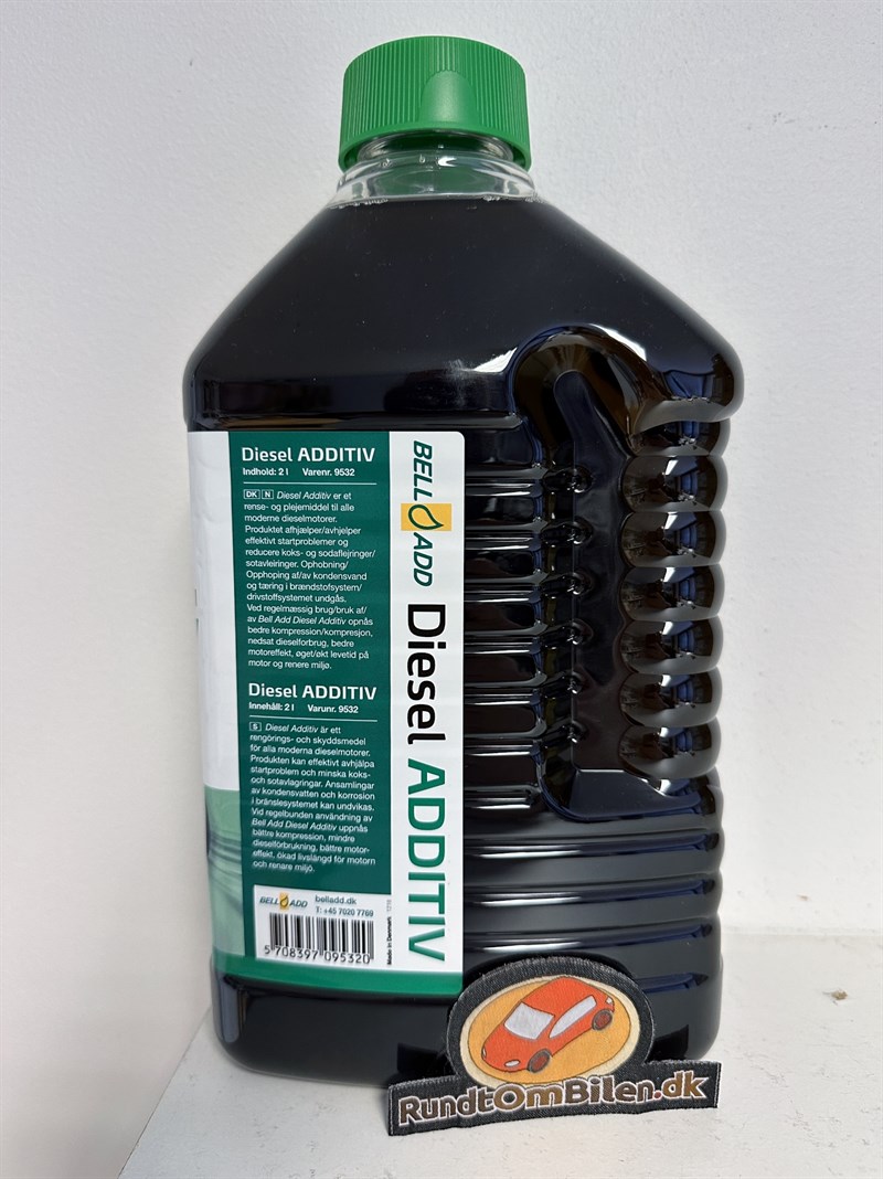 Bell Add Diesel Additiv renser og smører alle de dele hvor dieselen bevæger sig rundt. Det være sig dyser, brændstoftank, brændstofpumpe, ventiler, ventilsæder, forbrændingskammer mm. Kan afhjælpe startproblemer og reducere koks- og sodaflejringer. Udover dette sørger Bell Add additivet også for at udrense kondensvand fra brændstoftanken, således at tæring i tanken undgås. Ved regelmæssig brug af Bell Add Diesel additiv med ny formulering, opnåes bla., bedre kompression, nedsat brændstofforbrug, bedre motoreffekt, øget levetid på motoren samt renere miljø.
