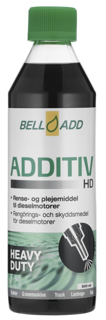 Additiv der fungerer som rense- og plejemiddel i alle typer af dieselmotorer, specielt egnet til store dieselmotorer i lastbiler, traktorer, entreprenørmaskiner o.l. Bell Add Diesel Additiv renser og smører alle de dele hvor dieselen bevæger sig rundt. Det være sig dyser, brændstoftank, brændstofpumpe, ventiler, ventilsæder, forbrændingskammer mm. Kan afhjælpe startproblemer og reducere koks- og sodaflejringer. Udover dette sørger Bell Add additivet også for at udrense kondensvand fra brændstoftanken, således at tæring i tanken undgås. Ved regelmæssig brug af Bell Add Diesel additiv opnås bl.a., bedre kompression, nedsat brændstofforbrug, bedre motoreffekt, øget levetid på motoren samt renere miljø.