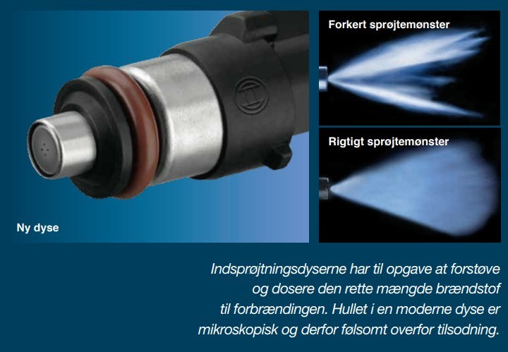 Anvendes ved støj fra dyser, ujævn motorgang eller hvis den af værkstedet målte dysekorrektion er udenfor de accepterede værdier for motoren. Produktet opløser effektivt belægninger i dyser og indsprøjtningssystemer på alle moderne benzinmotorer. Produktet hjælper ligeledes til at forhindre, at nye belægninger sætter sig i systemet.