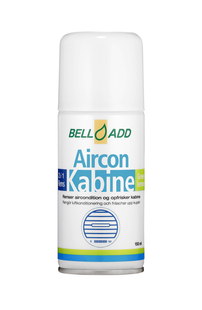 Airconditionrens og kabinerens i en arbejdsgang. Virkeligt smart produkt fra Bell Add der både renser airconditionanlægget samt frisker kabinen op på samme tid. På kun ca. 15 minutter nedbrydes mikroorganismer og andre bakterier i alle luftkanaler / klimaanlæg samt i selve kabinen. Produktet sørger samtidigt for at efterlade en frisk duft i kabinen, da den er lavet med det formål også at fjerne dårlig lugt fra f.eks. sved, tobak, "våd hund" mm.