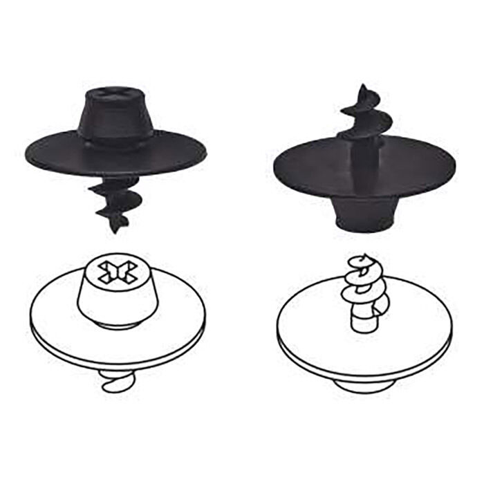 1 stk. universal bundskrue, til fastgørelse i bilens originale gulvtæppe. Herefter kan bundmåtens lås monteres på skruen.