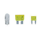 To sikringer på 10, 15 og 20 ampere og to mini sikringer på 10, 15 og 20 ampere. Alt sammen pakket i en robust opbevaringsboks.