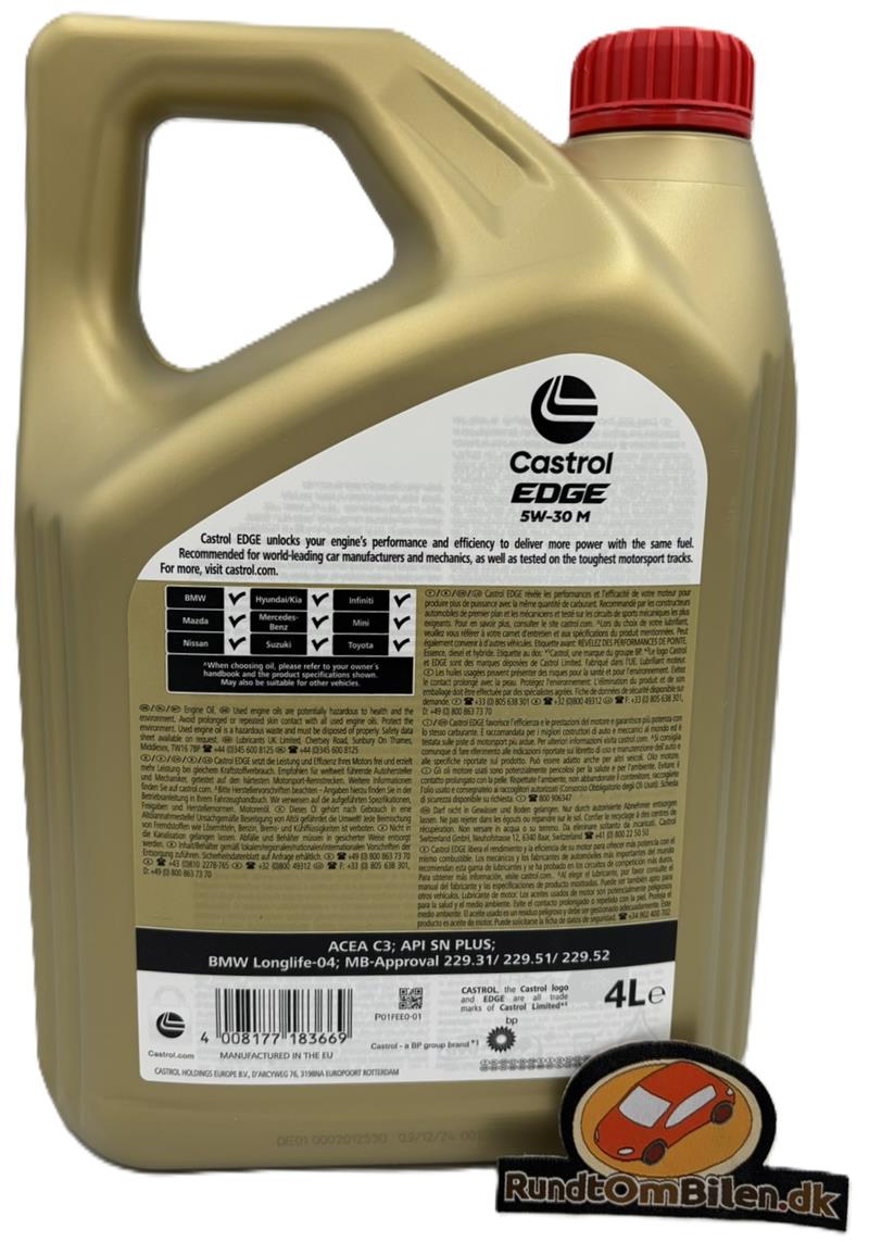 For at imødekomme de stigende krav fra især Mercedes og BMW, har Castrol udviklet denne nye Edge 5W30 M og olien har opnået godkendelserne 229.31, 229.51, 229.52 fra Mercedes og LL-04 fra BMW. Når Castrol udvilker en olie som denne, bliver der lagt vægt på at tilbyde ikke bare en olie der passer til bilerne der kræver motorolie efter de nævnte specifikationer, men samtidig har Castrol lagt kræfter i den nye additivpakke som medvirker til optimal beskyttelse og smøring af motorens indvendige dele.