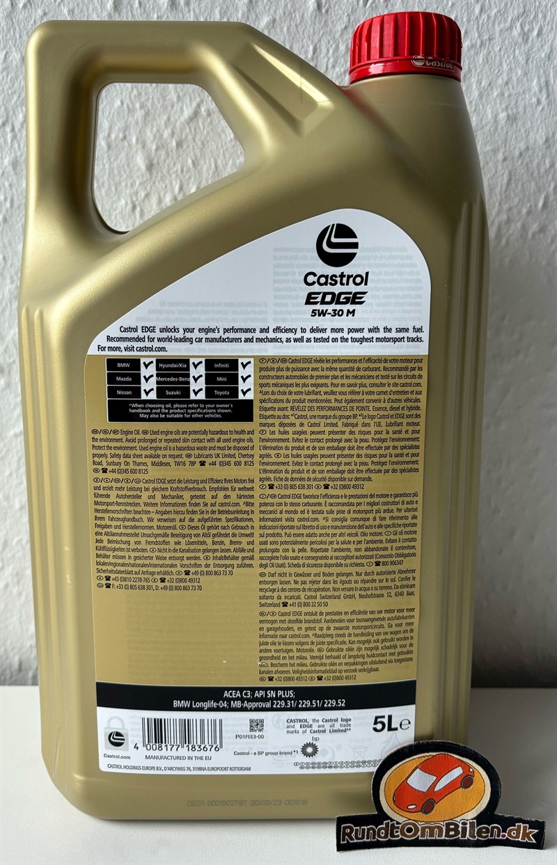 For at imødekomme de stigende krav fra især Mercedes og BMW, har Castrol udviklet denne nye Edge 5W30 M og olien har opnået godkendelserne 229.31, 229.51, 229.52 fra Mercedes og LL-04 fra BMW. Når Castrol udvilker en olie som denne, bliver der lagt vægt på at tilbyde ikke bare en olie der passer til bilerne der kræver motorolie efter de nævnte specifikationer, men samtidig har Castrol lagt kræfter i den nye additivpakke som medvirker til optimal beskyttelse og smøring af motorens indvendige dele. Alt i alt, er dette den perfekte BMW motorolie samt Mercedes motorolie.