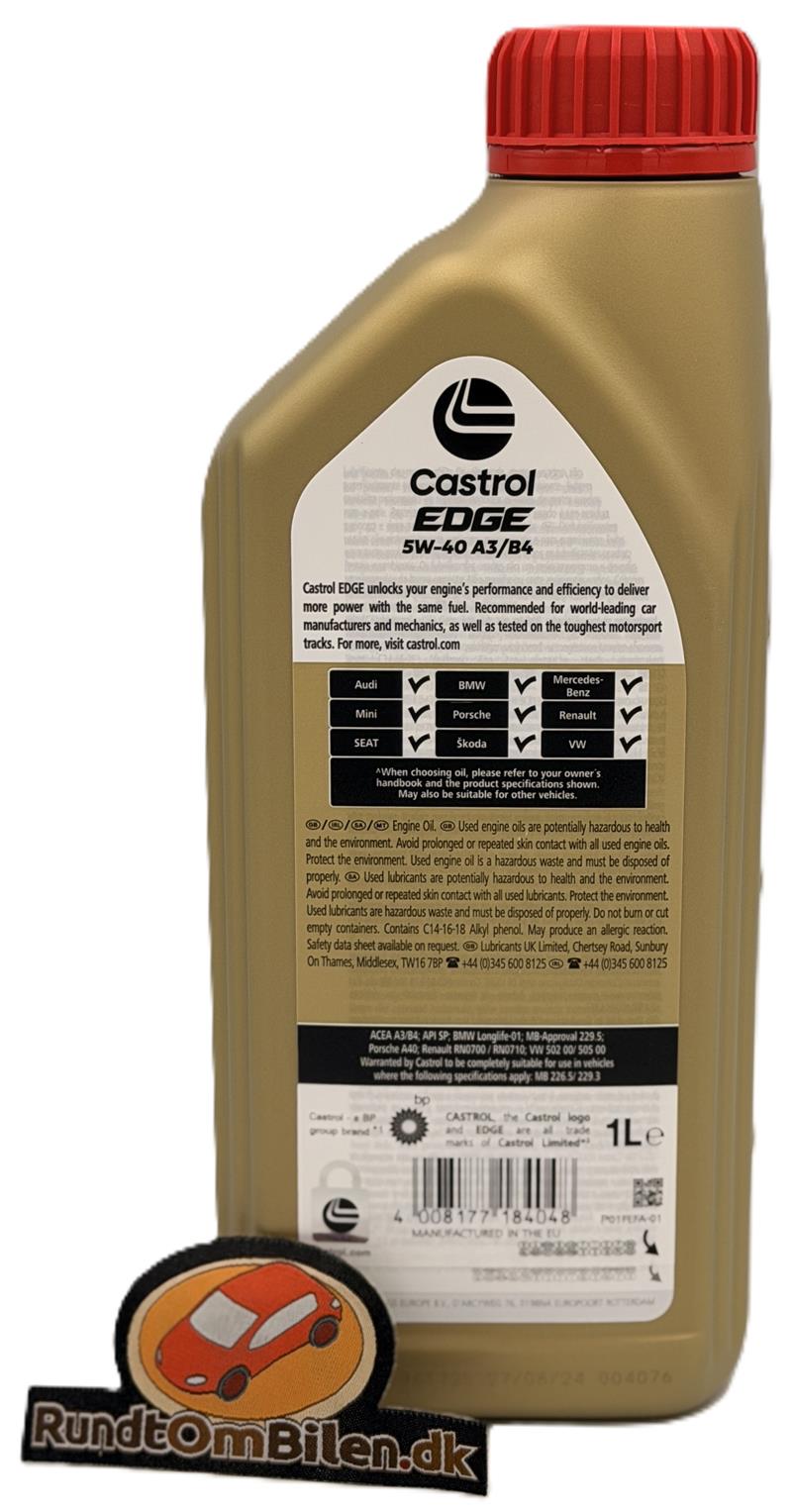 - Castrol EDGE 5W-40 A3/B4 med Fluid TITANIUM er det naturlige valg for bilister, der kræver maksimal motorydeevne af nutidens moderne biler, som kræver et højt beskyttelsesniveau og olier med højere ydeevne.