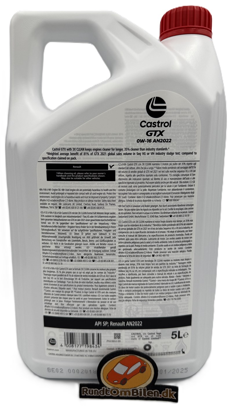 • Med GTX 0W16 AN2022 er du sikker på at overholde Renaults AN2022 oliespecifikation og kan trygt anvende olien.