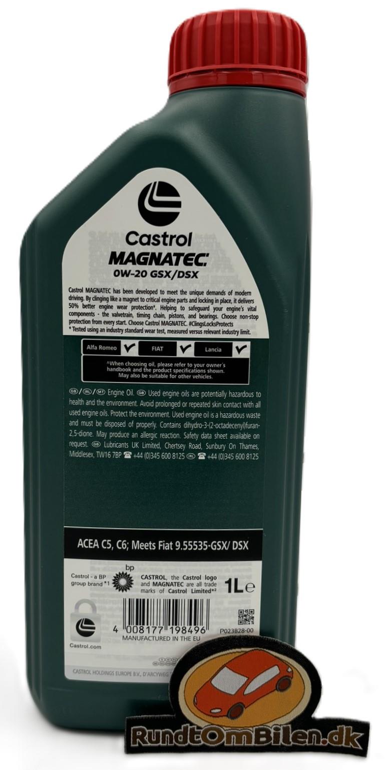Moderne biler kører med tyndere og tyndere motorolier og Castrol har kraftigt udvidet sortiment af motorolier i viskositeten 0W20. Denne Magnatec 0W20 GSX/DSX er specifikt godkendt efter normerne 9.55535-DSX og 9.55535-GSX fra Fiat koncernen og er dermed meget velegnet til biler der skal bruge olie efter denne specifikation. Motorolien kan naturligvis også bruges i andre biler der kræver 0W20 motorolie, check altid bilens vejledning for at finde den rigtige motorolie.