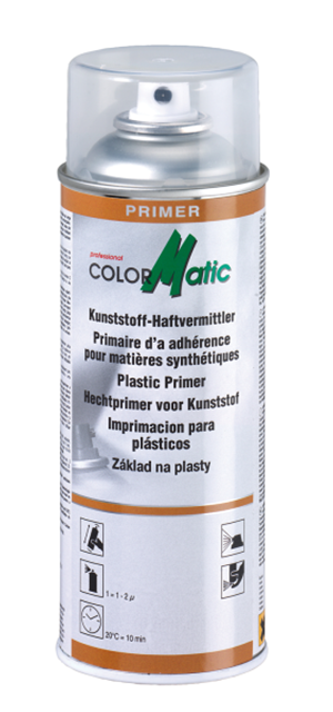 ColorMatic Plastic Primer har nogle specielle additiver der sikrer en fortræffelig vedhæftningsevne på både ud- og indvendige dele af plast eller kunststof. Primeren sprøjtes direkte på emnet der skal males og kan overlakeret efter blot 10 min.