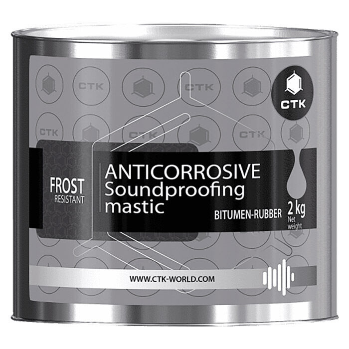 CTK Anticorrosive Soundproofing Mastic er baseret på butylgummi og bitumenadditiver, designet til lydisolering og korrosionsbeskyttelse af ydre elementer i bilens karosseri som hjulkasser, bunden mm. med lydabsorberende og vibrationsdæmpende egenskaber.