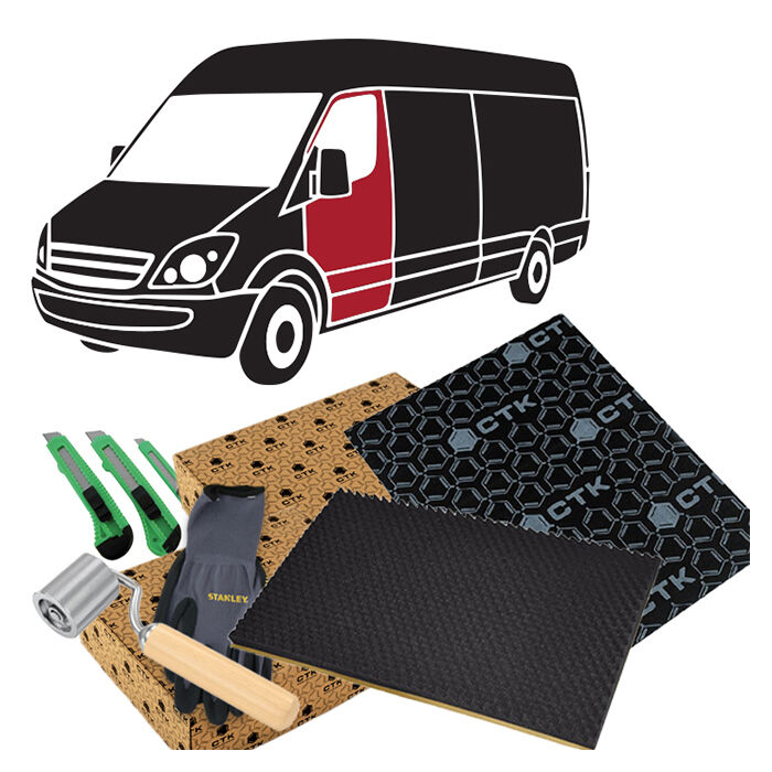 Denne støjdæmpningspakke indeholder nok materiale til at støjdæmpe dørene på de mest gængse varebiler som: Fiat Ducato, Peugeot Boxer, Citroen Jumper, Renault Master, Toyota Proace, Peugeot Expert, Citroen Jumpy, Mercedes Vito, VW Transporter, Ford Transit, VW Crafter, Mercedes Sprinter, MAN TGE og Iveco Daily. I pakken medfølger handsker, hobbykniv og CTK Rolle til påføring.