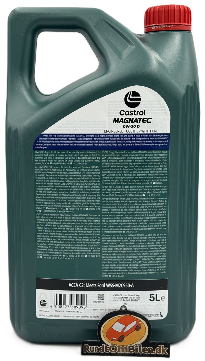 Med Castrols Magnatec 0W30 D får du den bedste olie til din Ford. Olien er udviklet direkte til Ford naturligvis godkendt af Ford med godkendelsesnummeret Ford WSS-M2C950-A.