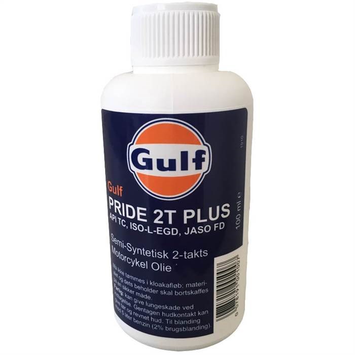 Gulf Pride 2T er et højkvalitets smøremiddel til brug i luftkølede 2-takts benzinmotorer på knallerter, scootere, plæneklippere etc. Olien er blandet af høj kvalitetsbaseolier og nøje udvalgte tilsætningsstoffer, der tilsammen yder beskyttelse af motoren og renlighed i cylinderen. Det lave askeindhold forhindrer gløde-tænding og tilsmudsning af tændrør og den lette blandbarhed med benzin en sikrer en stabil og ens blanding - selv ved lave omgivelsestemperaturer.