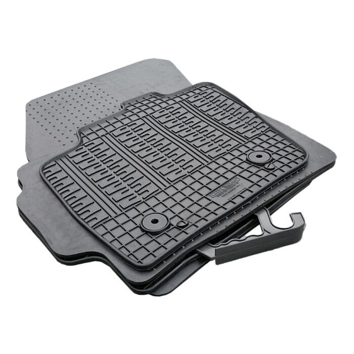 Den forhøjede kant gør, at måtten holder på skidt og snavs og beskytter bilens originale tæppe, samt er nem at rengøre. Hvis bilen har originale låse, vil der i måtten være fastgørelseshuller, som sikrer, at måtterne holdes på plads i bilen.