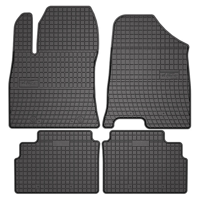 Gummimåtter til Hyundai Kona II crossover 2022- Gummimåtter er praktiske og et absolut must i vinterhalvåret. Måtterne er "skræddersyet" til den enkelte bilmodel og har derfor 100% pasform takket være nøjagtig lasermåling af hver bil. Måtten er produceret af 100% stræk fleksibel gummi og er med funktionelt ternet mønster på måtten. Måtten har yderligere materialeforstærkning under pedalerne for bedre holdbarhed. Måtten har en 1,5 cm praktisk kant, hvilket gør at måtten holder på skidt og snavs og beskytter bilens originale tæppe, samt er nem at rengøre. Hvis bilen har originale låse, vil der i måtten være fastgørelseshullerne som sikrer, at måtterne holdes på plads i bilen. Nogle gummimåtter kan have en kraftig lugt af gummi. Disse gummimåtter er uden den ubehagelige lugt af gummi, men med tilsætning af en delikat vaniljearoma.