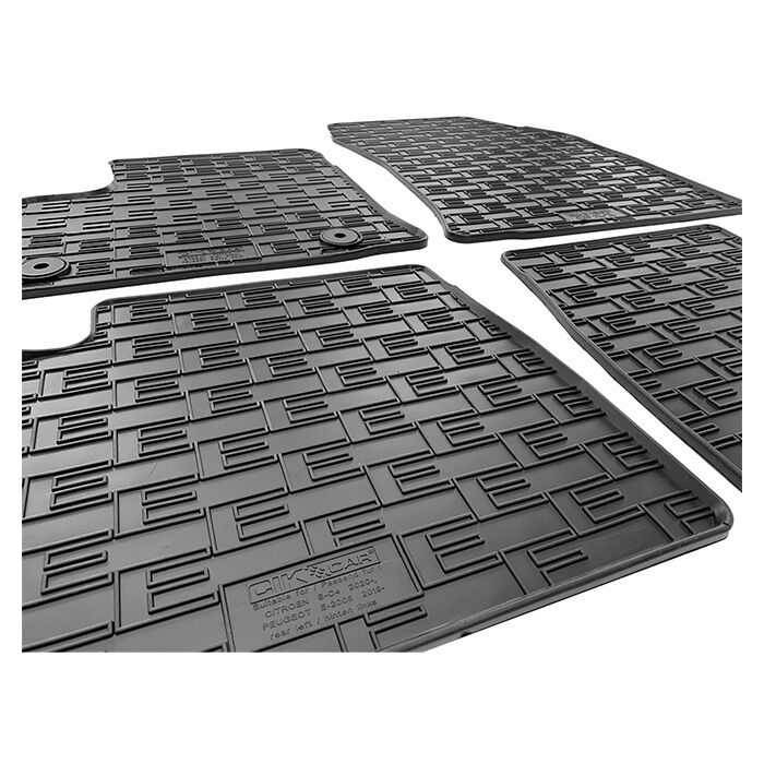Gummimåtter til Peugeot E-2008 II 2019-/Citroen E-C4 2020- Gummimåtter er praktiske og et absolut must i vinterhalvåret. Måtterne er "skræddersyet" til den enkelte bilmodel og har derfor 100% pasform. Den forhøjede kant gør, at måtten holder på skidt og snavs, beskytter bilens originale tæppe, samt er nem at rengøre. Hvis bilen har originale låse, vil der i måtten være fastgørelseshuller, som sikrer, at måtterne holdes på plads i bilen.