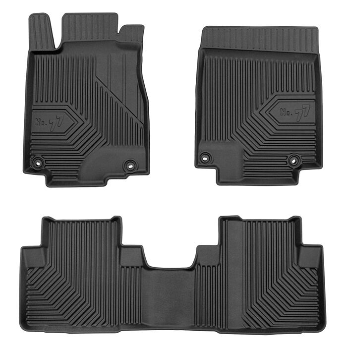 Gummimåtterne fra Frogum er praktiske og et absolut must i vinterhalvåret. Måtten er "skræddersyet" til den enkelte bilmodel og har derfor 100% pasform takket være nøjagtig lasermåling af hver bil. Bilmåtter er ekstremt modstandsdygtige over for enhver mekanisk skade, slid, kemikalier og UV - takket være TPE Premium-materialet. Måtten bevarer sin fleksibilitet og elasticitet selv under ekstreme klimatiske forhold, hvilket sikrer holdbarheden. Måtten har en praktisk kant på 4 cm, hvilket gør, at måtten holder på skidt og snavs og beskytter bilens originale tæppe, samt er nem at rengøre. Hvis bilen har originale låse, vil der i måtten være fastgørelseshuller, som sikrer, at måtterne holdes på plads i bilen. Nogle gummimåtter kan have en kraftig lugt af gummi. Disse gummimåtter er uden den ubehagelige lugt af gummi, men med tilsætning af en delikat vaniljearoma. Specifikationer: