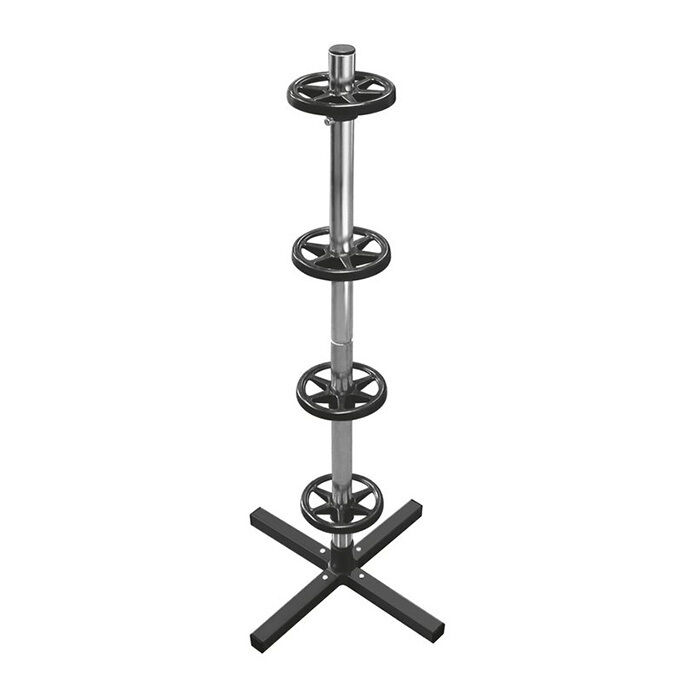 Hjulstativ med overtræk til sikker og ideel opbevaring af fælge med sommer- eller vinterdæk i værksted eller garagen. Velegnet til alle almindelige bilfælge med en dækbredde på 22,5 cm. Med de fire plastikholdere kan stativet nemt rumme 4 standardbildæk, så de svæver over jorden, hvilket forhindrer deformation på grund af tryktab. Stativet er lavet i aluminium. Nem og hurtig at samle og skille ad. Derudover medfølger et praktisk overtræk til at beskytte dæk og fælge med.