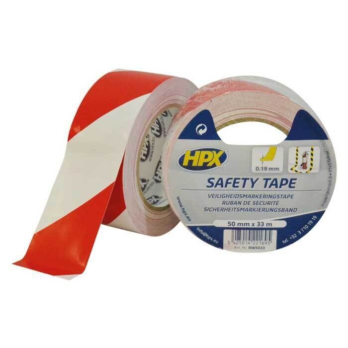 HPX sikkerhedstape - rød/hvid selvklæbende 50mmx33m