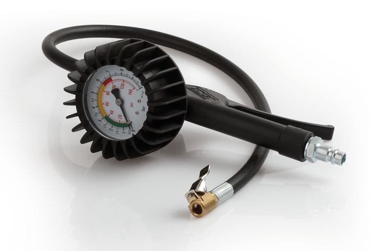 Med 63mm manometer og 0,5m slange monteret med "klemme". Manometer måler fra 0-12bar (0-174 psi).