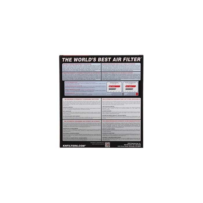 K&N vaskbare og genanvendelige High-Flow Air Filters™ har et avanceret design af lagdelte, olierede bomuldsmedier, der er konstrueret til at forbedre luftstrømmen og fange forurenende stoffer, og er samtidig designet til at give en forøgelse af hestekræfter. Hvert luftfilter kan genbruges, er konstrueret til at holde hele køretøjets levetid og er understøttet af K&N's 10-årige/Million Mile Limited Warranty. K&N udskiftningsfiltre er designet, så de er lette at installere i din originale luftfilterkasse. Opgrader i dag, og begynd at nyde overlegen luftgennemstrømning og overlegen ydelse fra K&N’s mest populære produkt!