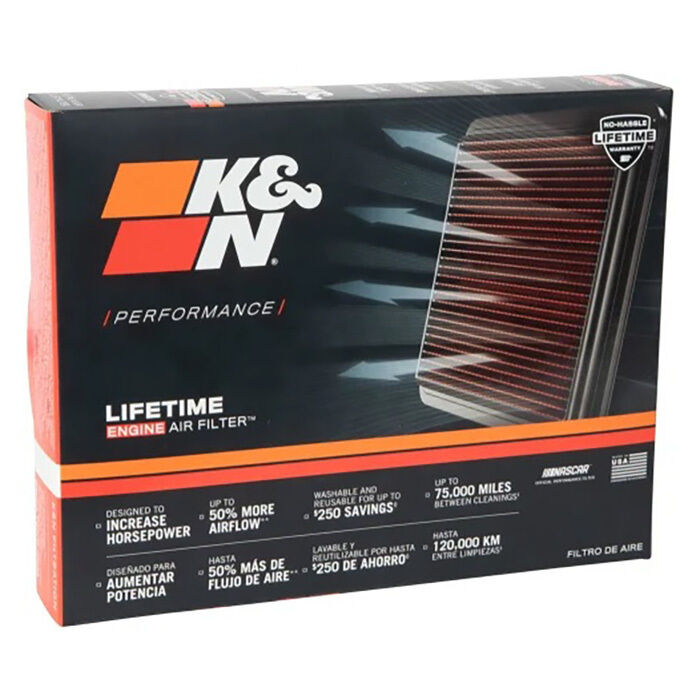 Air Intake system fra K&N hjælper med at øge luftmængden til motoren, hvilket giver en garanteret stigning i køretøjets hestekræfter og drejningsmoment. Der medfølger et vaskbart og genanvendeligt High-Air Flow Filter, som forbedrer luftstrømmen, fanger forureninger, og på samme tid hjælper til øgningen af køretøjets hestekræfter.