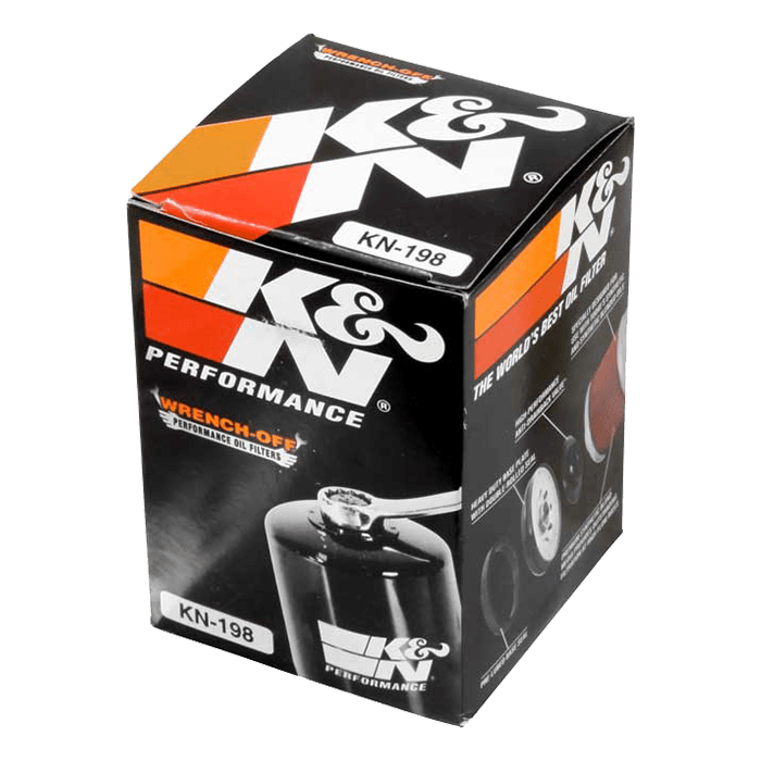 K&N Powersports oliefiltre indeholder et moderne syntetisk filtermedie, der er designet til et ultimativt flow med mindre trykfald, samtidig med det er udviklet til fremragende filtrering. K&N Powersports "spin-on" oliefiltre har en "heavy-duty" metaldåse. De fleste af disse har en 17 mm møtrik fastgjort på enden, der giver mulighed for nem installation og fjernelse. Møtrikken er krydsboret, så racere kan sikre filtret til deres cykel.