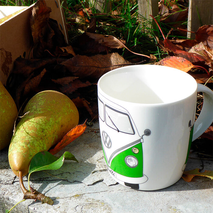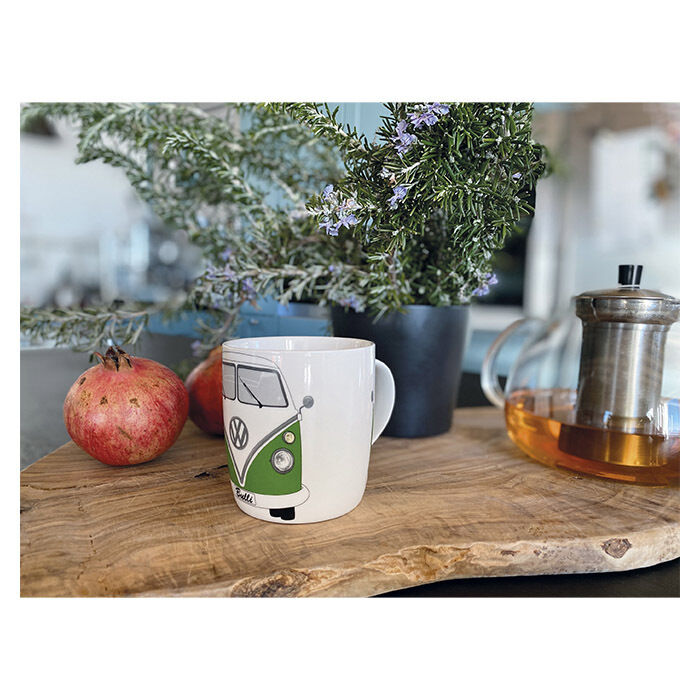 Krus med hank og print af grøn klassisk VW T1 bus.