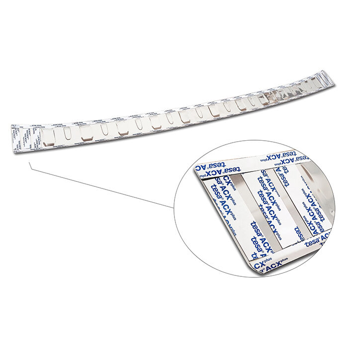 Avisa læssekantbeskytteren er den perfekte løsning til din bil, fordi den både har beskyttende funktioner og ser flot ud som et dekorativt element. Den er fastgjort ved hjælp af dobbeltklæbende tape, som er placeret på alle fire kanter af læssekantbeskytteren.