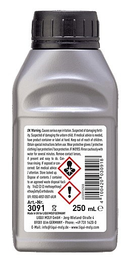 TIP: En bremsevæske dunk/flaske der har været åbnet kan trække fugt, hvilket nedsætter bremsevæskens kogepunkt. Så pas på med at købe store dunke med bremsevæske hvis ikke det bruges hurtigt.