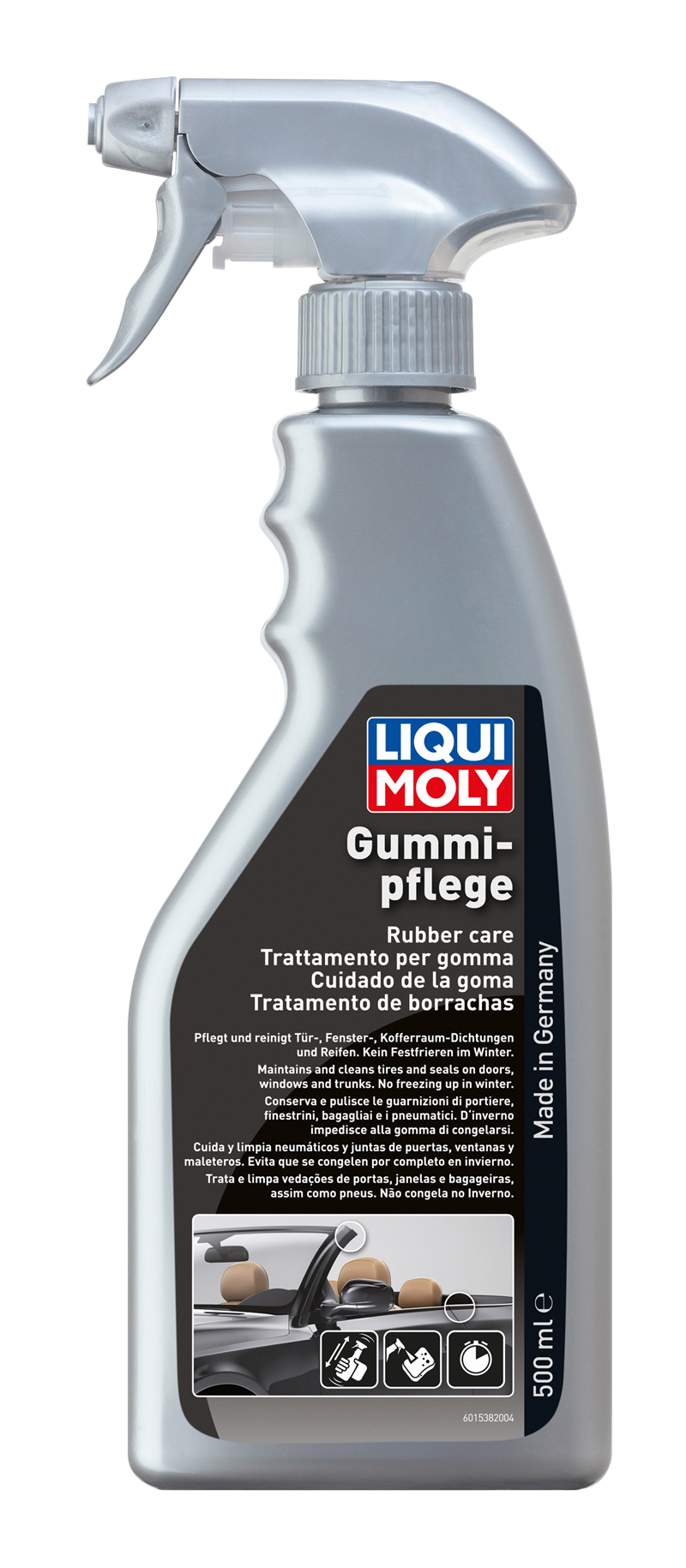 Der er mange gummilister på din bil og for at holde dem smidige, bør de jævnligt behandles med gummipleje. Gummipleje beskytter, således at ældning udsættes og gummiet ikke mørner. Samtidig slutter behandlet gummi tættere og då får dermed en bedre tætning rundt om døre, bagagerum etc. Forhindrer fastfrysning. Holder gummidele elastiske og forlænger dermed levetiden. Også egnet til pleje og dybderengøring af bildæk og gummimåtter.
