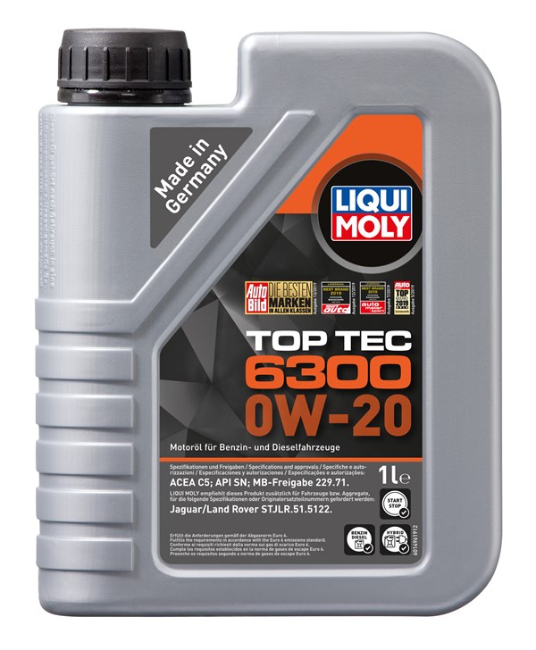 Denne Liqui Moly olie en del af Premium olierne fra tyske Liqui Moly. Olien er baseret på syntetiske additivpakker som resulterer i en moderne brændstofeffektiv olie, udviklet til brug gennem hele året til i særdeleshed biler med små højtydende motorer. Tendensen med færre kubik (ccm) har varet i nogle år og ser ud til at fortsætte, i takt med at kravene til bilernes forurening skærpes år for år. Det kræver en olie der smører ved både høje temperarur og ved højt tryk, netop der kommer denne Liqui Moly Top Tec 6300 ind i billedet. Olien beskytter mod slidtage under alle kørestile og temperaturer og medvirker til lavt brændstofforbrug. Denne olie er specielt beregnet til moderne motorer med stop-start systemer fra Mercedes, Jaguar og Land Rover, men kan naturligvis også bruges på en række andre biler.