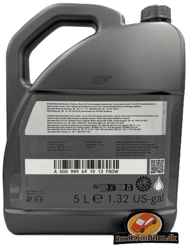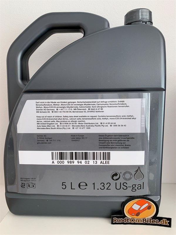 Med Original Mercedes Benz motorolie MB229.51 er du sikret: