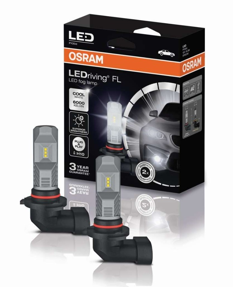 Farvetemperatur på op til 6.000 Kelvin og et kompakt design gør Osrams nyeste LEDriving  til en nem løsning for at erstatte de traditionelle H10 glødepærer.