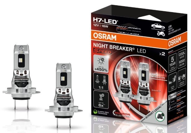 - OSRAM præsenterer nu Speed 450 ECE godkendte H7 LED i samme størrelse som halogenpærer, passer direkte i bilens originale sokkel