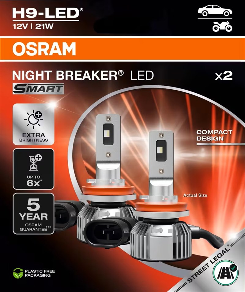 Osram Night Breaker LED Smart H9 pærer med ECE godkendelse +330%