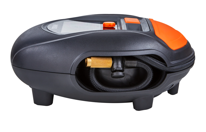 Super smart kompressor med digitalt display der indstilles til det ønskede lufttryk ved at bruge drejeknappen. Tryk start og kompressoren stopper automatisk med at pumpe når det ønskede dæktryk er opnået.