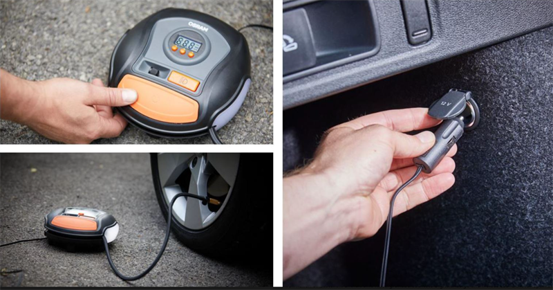 Super smart kompressor med digitalt display på 40x35mm der indstilles til det ønskede lufttryk ved at bruge drejeknappen. Tryk start og kompressoren stopper automatisk med at pumpe når det ønskede dæktryk er opnået.