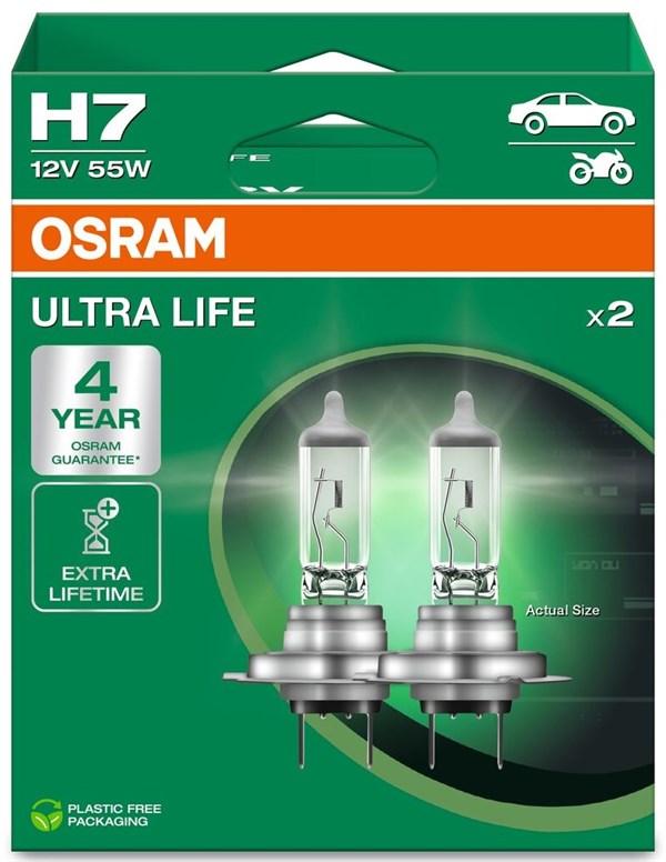Osram Ultralife H7 pærer er for dig der gerne vil have en pære der lyser godt, men samtidig holder betydeligt længere end traditionelle forlygtepærer. UltraLife pærer fra Osram er såkaldte Longlife pærer der holder op til 4 gange så lang tid som en standard Osram pære. Med andre ord er der langt imellem pæreskift på bilen.