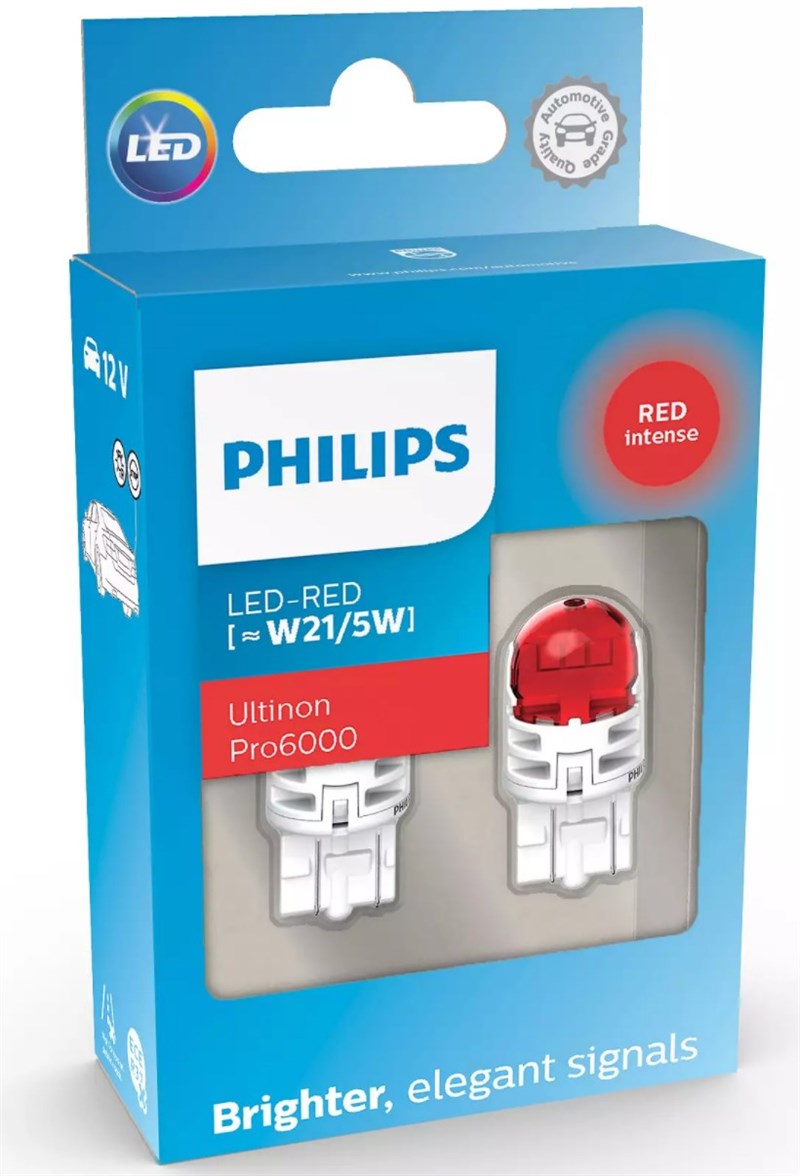 W21/5W RØD LED Ultinon Pro6000 Si autopære fra Philips