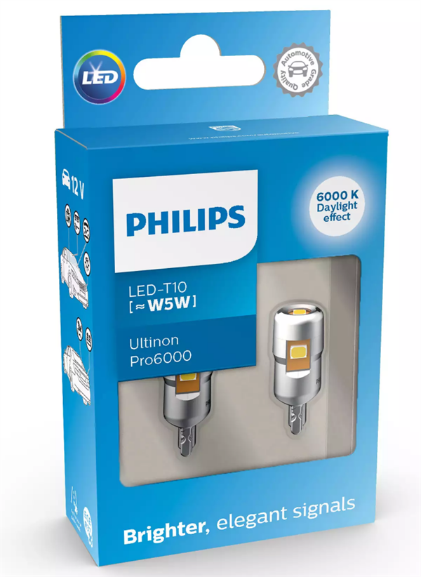 Philips Ultinon PRO7000 LED autopære W5W 6000K. Pæren med det flotte "skarpe" lys.