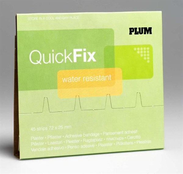 1 pakke af disse Indeholder 45 stk vandfaste plastre der passer i Plum Quick Fix dispensere.