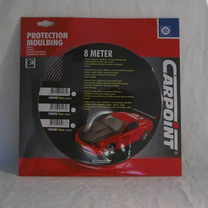Pynte- og beskyttelsesliste i krom forsynet med dobbeltklæbende tape for nem montering. Kan nemt tilpasses den ønskede længde med saks eller lignende. Kan anvendes både indvendig i kabinen og udvendig på bilen. Specifikationer:
