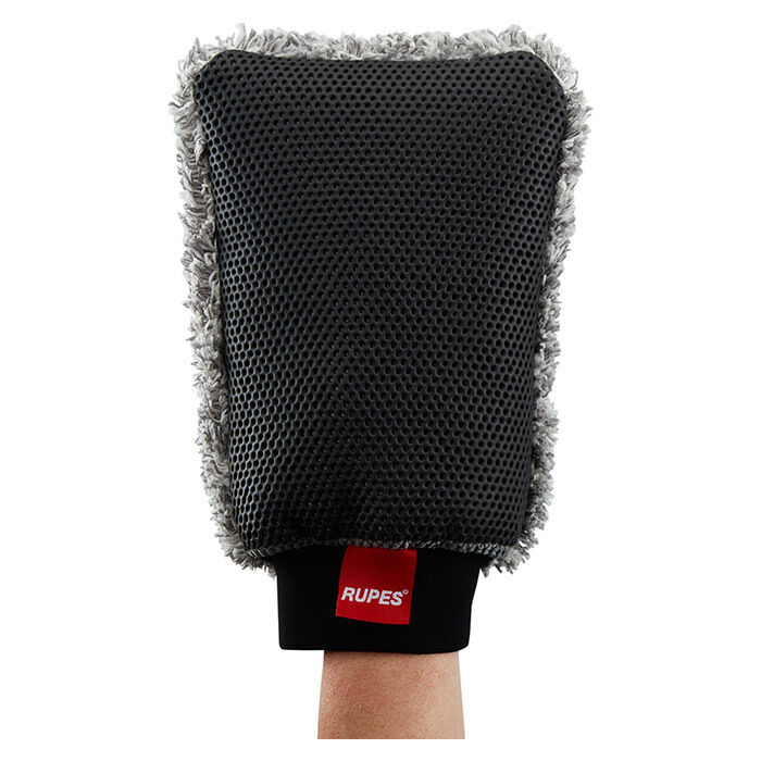 Rupes clay vaskehandske er en alt-i-én løsning til at vaske og fjerne snavs fra dit køretøj. Brug den bløde syntetiske mikrofiberside til forsigtigt at fjerne snavs, vejtjære og snavs. Brug den syntetiske lerside til at fjerne genstridige indlejrede urenheder, som almindelig vask ikke vil fjerne.