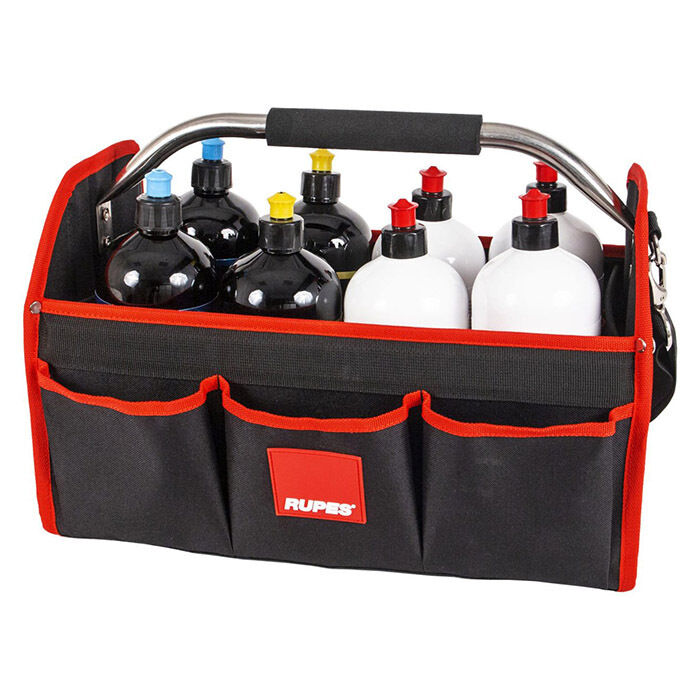 RUPES-flaskeholder er den perfekte løsning til at bære polermiddelflasker og andre genstande, du har brug for, når du arbejder. Denne taske indeholder: