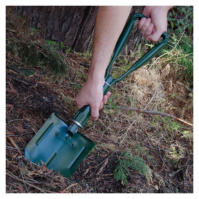 Sammenklappelig skovl i stål som kommer i en praktisk opbevaringstaske. Denne robuste og elastiske skovl kan opbevares i din bil til brug i enhver nødsituation, uanset om det er til sne, mudder eller sand.