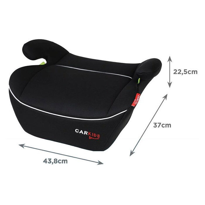 Carkids Alex I-Size sort selepude med hvide detaljer, til børn fra 125-150 cm høje. Kan monteres på passagersædet eller på bagsædet. Opfylder R-129-standarden og erstatter R44/04-godkendelsen. På grund af R-129-standarden klassificeres selepude/autostole ikke længere i en gruppe, men efter barnets højde.