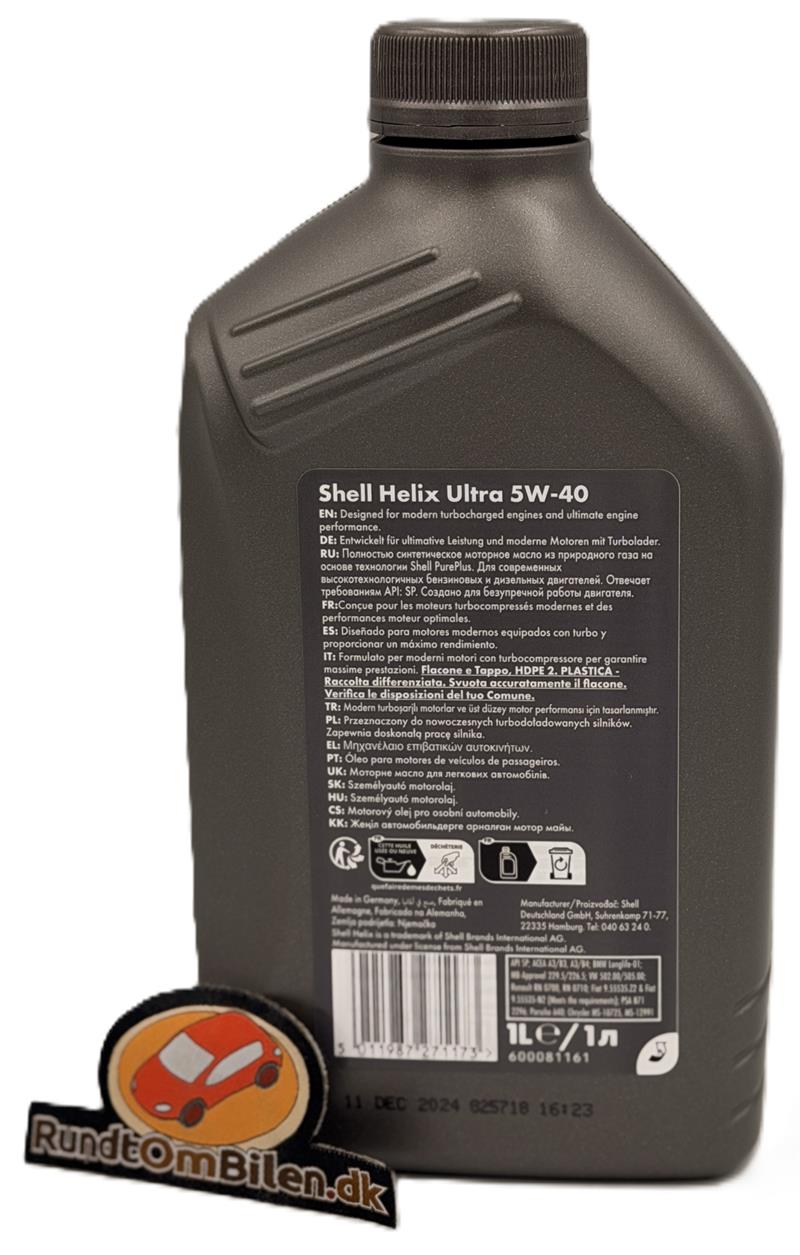 Shell Helix Ultra 5w40 (1 liter) Fuldsyntetisk Shell motorolie