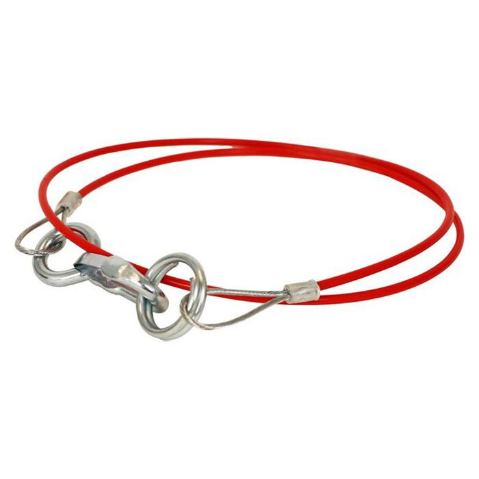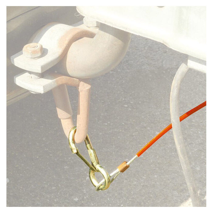 Sikkerhedswire / nødbremsewire med ring og karabinhage til montering mellem bil og trailer.